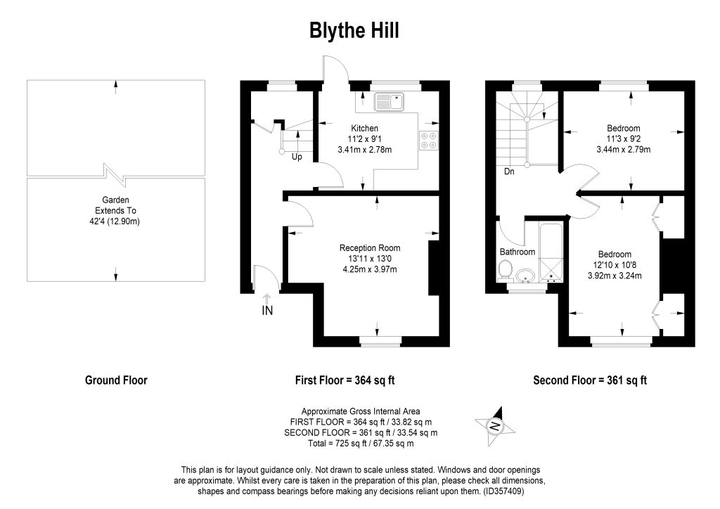 Take external steps to your front door (at first floor level). In here and a neat hall welcomes you. To your right you have a bright south-facing reception room, of 13 feet each way. There is plenty of space for both seating and dining. As throughout the flat, you have a double-glazed window.