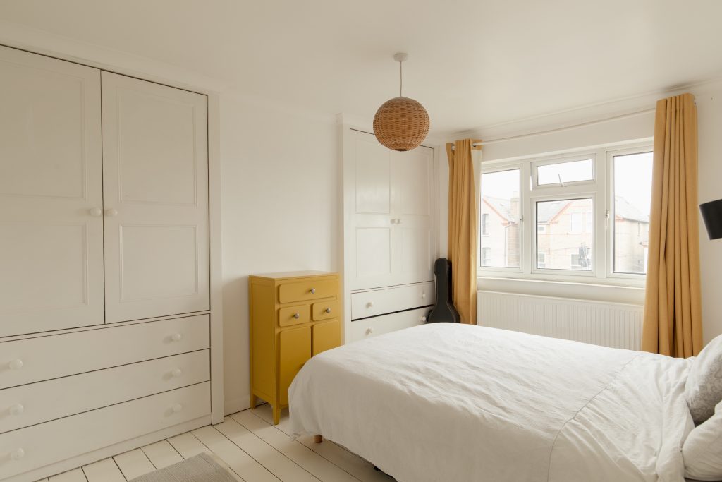 In again and up the stairs and your two double bedrooms are to front and back. The principal bedroom is to the front - of over 10 feet by nearly 13 feet. This has stripped and painted boards to the floor, and brilliant built-in cupboards and drawers to both alcoves.